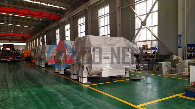 固廢處理設備采用雙臥軸強制式攪拌機中的雙螺帶攪拌機對固廢進行攪拌